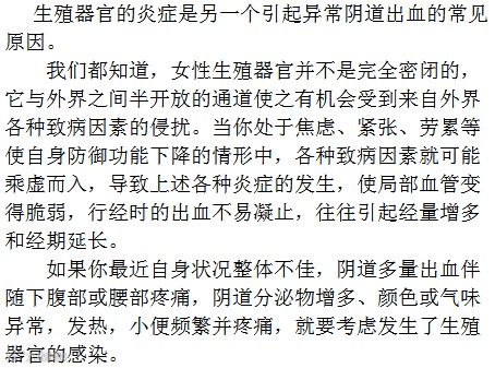 成熟女性的异常阴道出血有时与妊娠合并症相关,如果你的月经平时非常准时,却无缘无故地迟到了一个多星期或十几天,之后像开了水闸似地哗哗流个不停,还夹杂着比平时更多的血块或组织物出来,时间也比平时更久些。那么,这很可能是一次小型的流产事件。