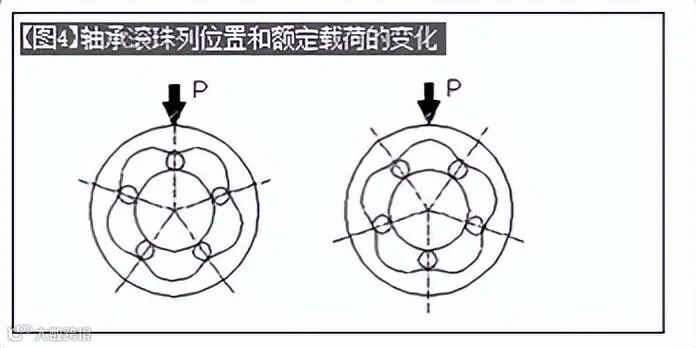 【图4】为5列滚珠轴承、其额定载荷比率值(右图÷左图)如下。因此应尽量参考上图的安装角度进行安装。公众号:solidworks非标机械设计