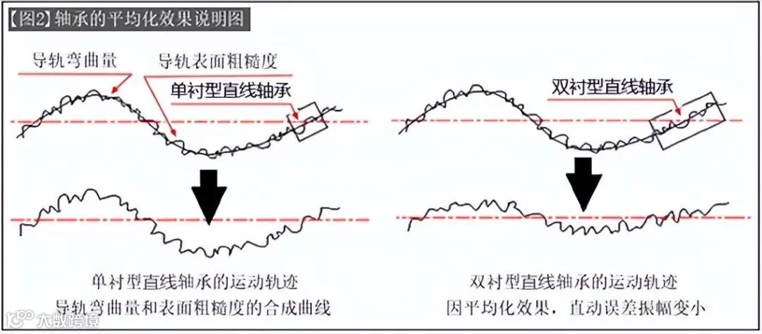通过平均化导轨(轴)的导向误差,来提高产品精度(平均化效果:参照注记)(【图2】)。 |