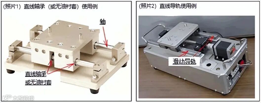 a) 直线轴承采用圆柱形轴作为导轨,轴承和导轨之间的间隙采用「间隙配合:g6」或者「过渡配合:h5」,保持微小「间隙」状态进行滑动。
