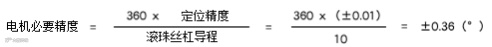 ・所需定位精度=±0.01(mm),当选择滚珠丝杠导程=10(mm/rev)时,步进电机的必要精度(分度)可通过下式计算。