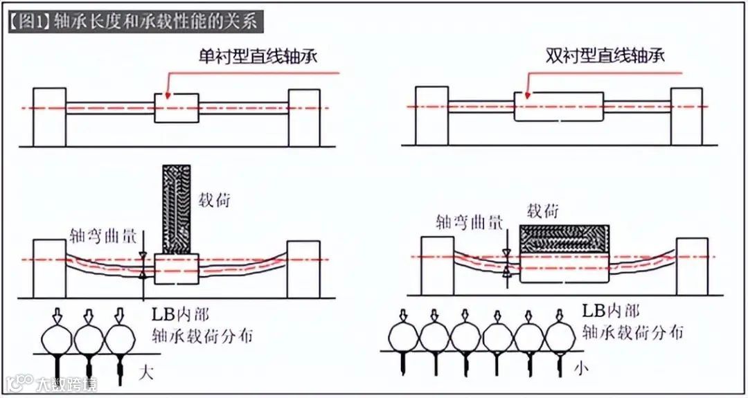 因此,选择轴承长度较长的直线轴承,能够提高产品承载性能(=寿命增长、可靠性增加)(【图1】)。