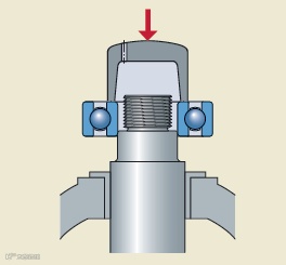 正常安装轴承时,如果内圈是配合面,那么就会压内圈,外圈不受力,也就不会产生伤痕,如下图。