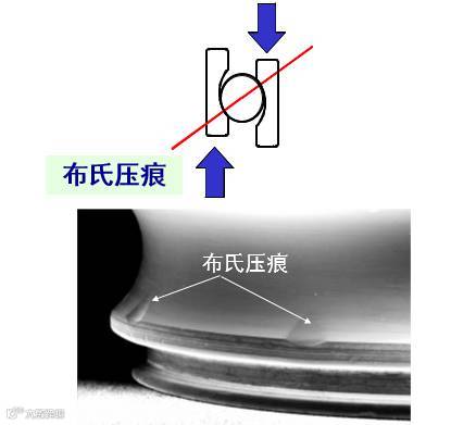 但,如果不是这样呢,而是让内外圈相对受力了呢?那就会如下面这样的图示,产生了布氏压痕。