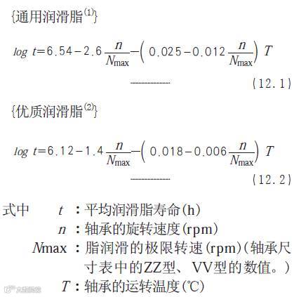 寿命二:平均润滑脂寿命L50(考核润滑脂多久会干涸掉),这个东西呢,每个轴承厂家的计算公式还都不一样,下面以NSK样本书给出的计算公式说明之: