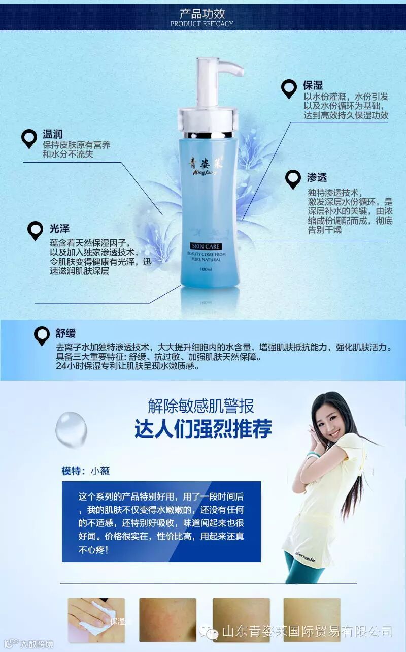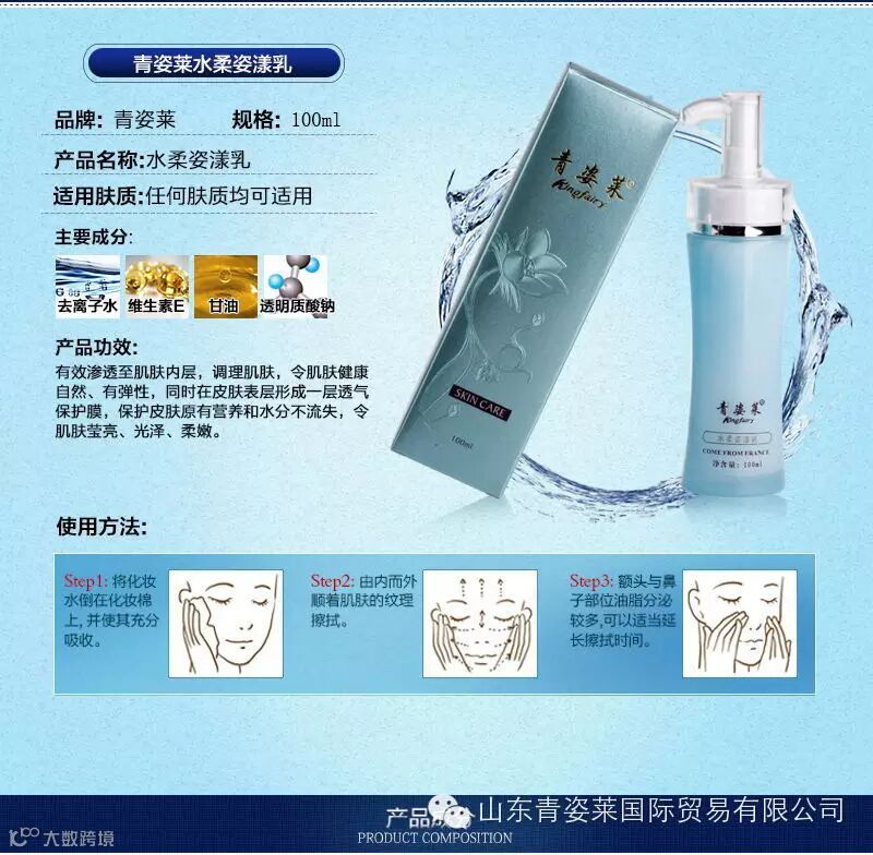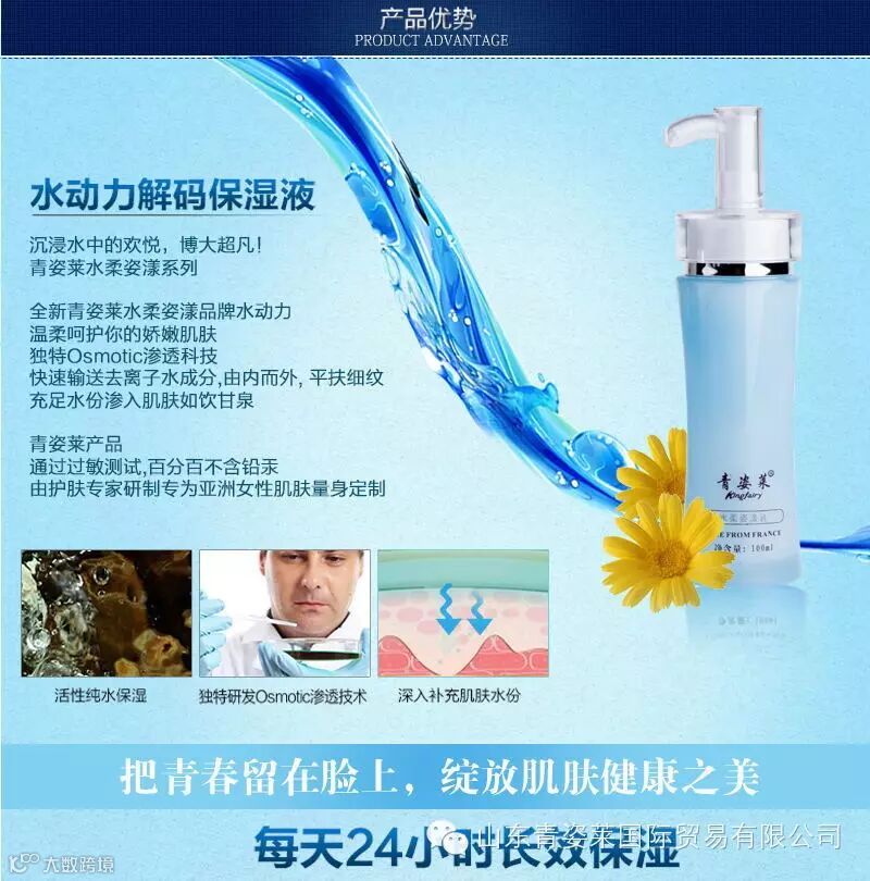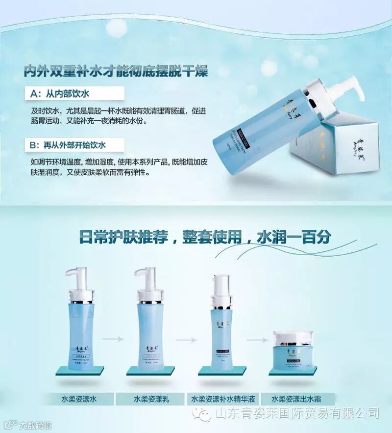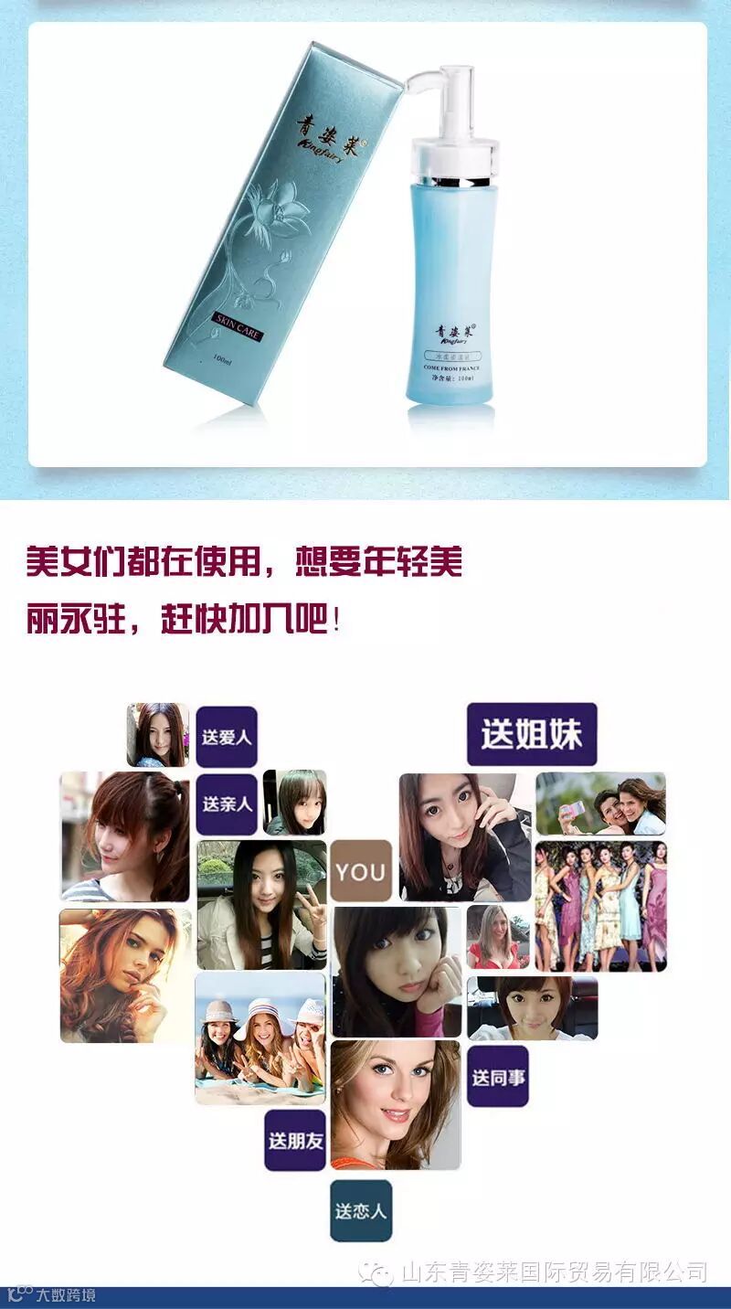 青姿莱品牌系列是能调理面部经络气血,改善肌肤新陈代谢并延缓衰老的产品。 主张打造纯天然护肤秘籍,把大自然的馈赠装进瓶子,让你的美丽像呼吸一样真实,用真情锻造产品,以爱心打造质量。