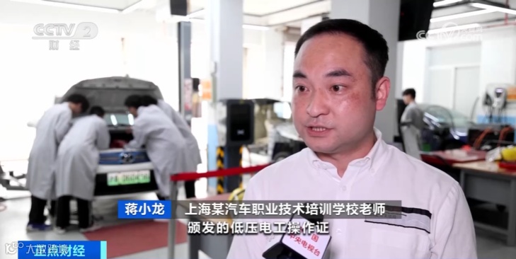上海某汽车职业技术培训学校老师 蒋小龙:首先要学会高压安全,还要考取低压电工操作证,同时还要掌握电子、机械、材料、计算机等知识。新能源汽车技术涉及多个学科和领域。