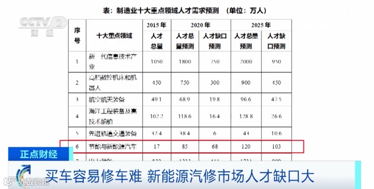 工信部发布的《制造业人才发展规划指南》指出,到2025年,节能与新能源汽车的人才总量预计达到120万人,但人才缺口预计可达103万人。其中,新能源汽车维修领域将面临80%的人才空白。