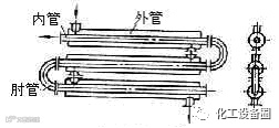 套管式换热器是由两种不同直径的直管套在一起组成同心套管,其内管用U型肘管顺次连接,外管与外管互相连接而成的,换热时一种流体走内管,另一种流体走环隙,内管的壁面为传热面。此类换热器适用于高温、高压及小流量流体间的换热。