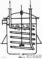 夹套式换热器结构简单,但由于其加热面受容器壁面限制,传热面较小,且传热系数不高,常用于传热量不大的场合,为改进这些缺点,通常在容器内装上搅拌器使流体处于强制对流状态,同时在容器内加设盘管,以增大传热面积。