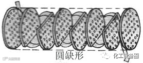 其结构特点是两块管板分别焊接于壳体的两端,管束两端焊接或胀接在管板上,封头用螺栓与管板相连,封头与管板之间的空间构成流体的分配室。为了提高壳内流体的流速,通常在壳体内安装一定数量与管束垂直的折流挡板。常用的挡板形式有圆缺形(又称弓形)和盘环形两种(见图)。由于管板与壳体、管子都焊在一起,位置完全固定不变,故称为固定管板式。整个换热器分为两部分:换热管内的通道及与其两端相贯通处称为管程;换热管外的通道及与其相贯通处称为壳程。若管流体一次通过管程,称为单管程。流体在管内依次往返多次,则称为多管程。常采用二管程和四管程(见图)。