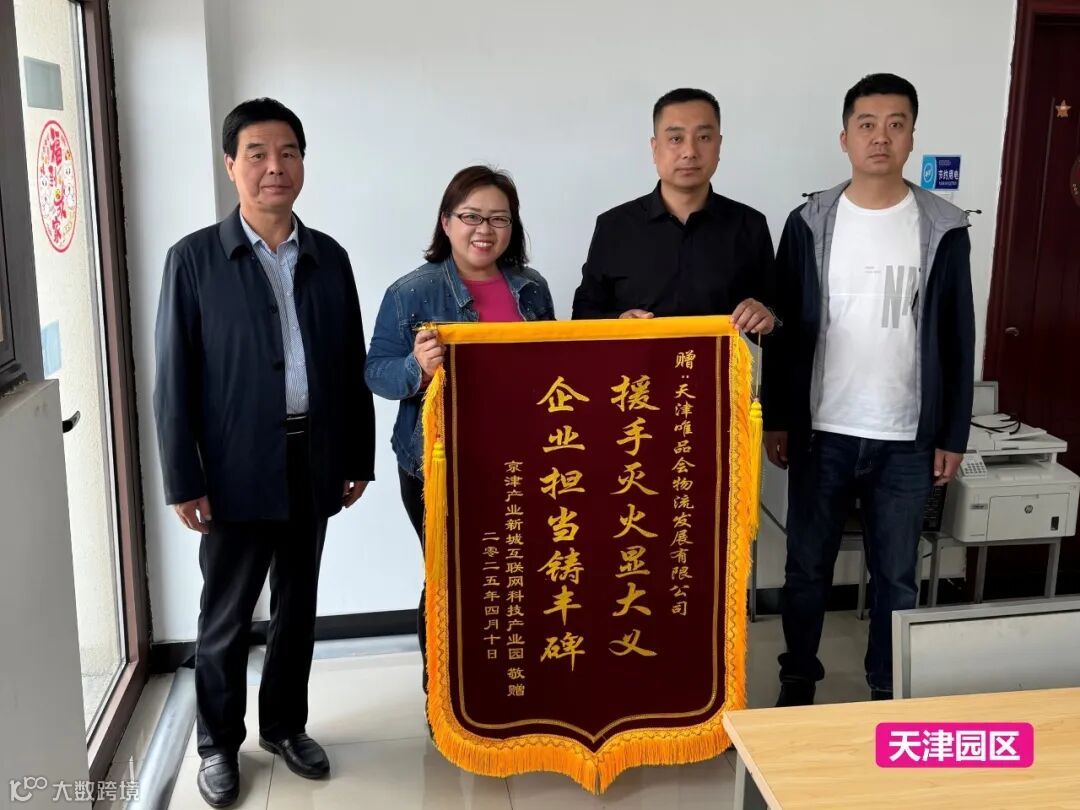 2025年4月16日,天津唯品会园区所属武清产业园管委会企业服务部、安管部门来到园区,送上 “援手灭火显大义,企业担当铸丰碑” 的锦旗,表彰唯品会园区积极承担社会责任,共同维护群体消防安全的优秀事迹。火情速控显担当 未雨绸缪护平安