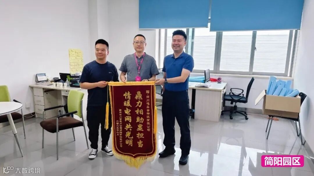 2025年6月18日,国网简阳供电分公司代表到访了唯品会简阳园区物业管理中心,热情送上 “鼎力相助显担当,情暖电网共光明” 锦旗,感谢我司在突发断电期间启动应急预案保障生产、安抚客诉情绪,为电网检修提供了便利。