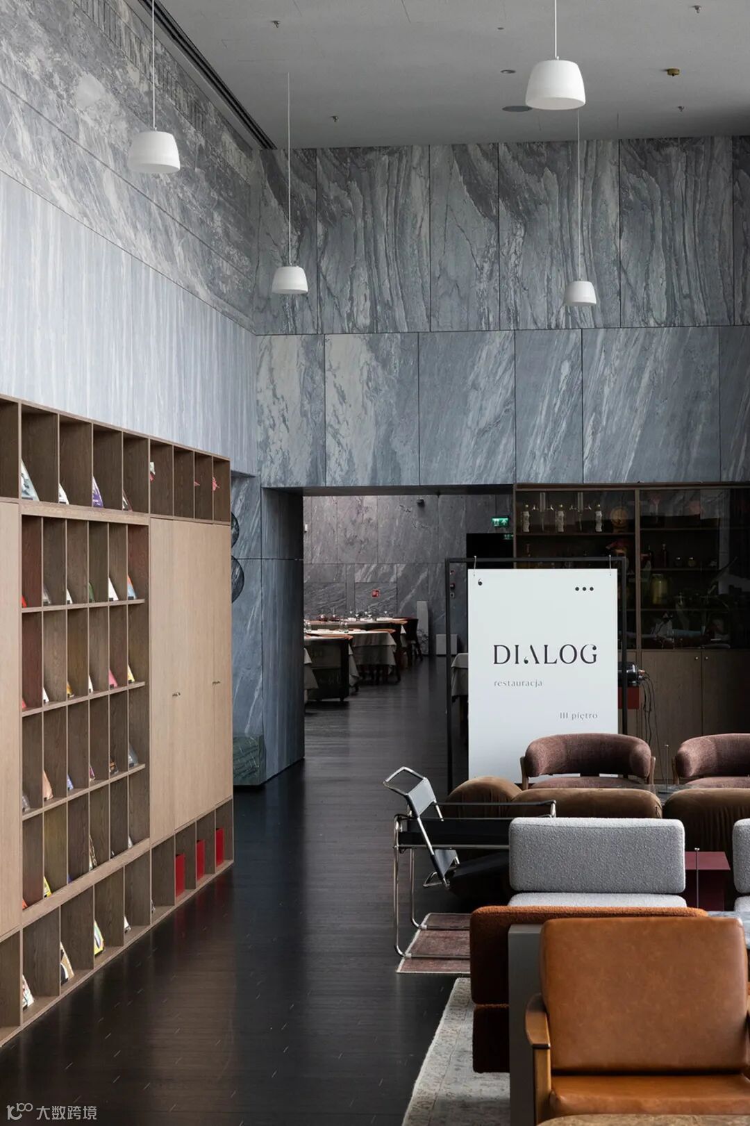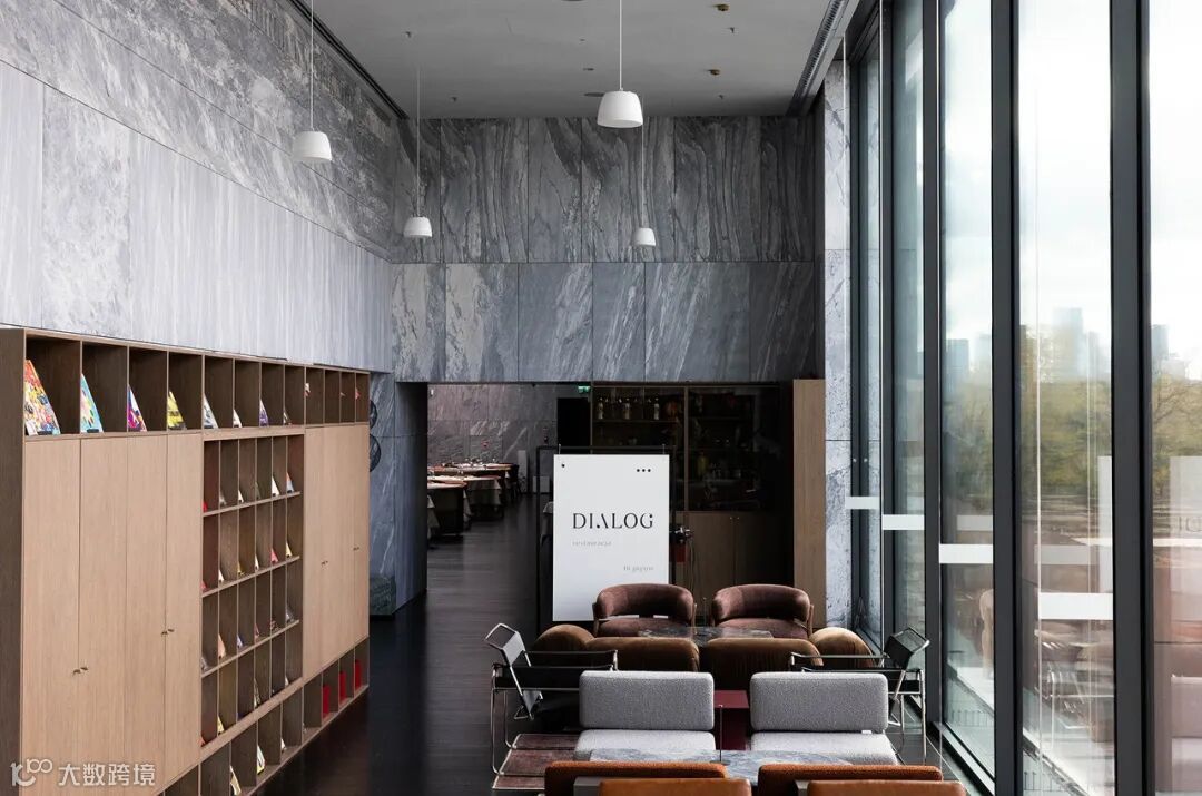 华沙波兰历史博物馆是一座占地45,000平方米的宏伟建筑。在其引人注目的大理石建筑内,“Dialog”餐厅呼应了建筑的粗犷设计语言,室内大量使用石板装饰。