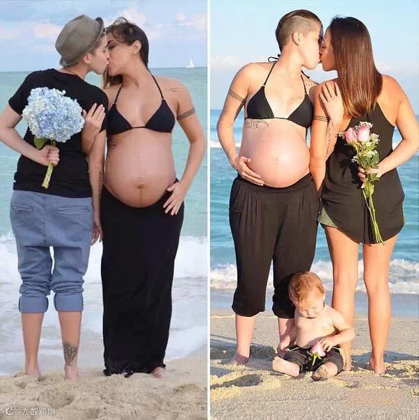 一对女同性恋先后怀孕,他们的幸福家庭照被刷爆了