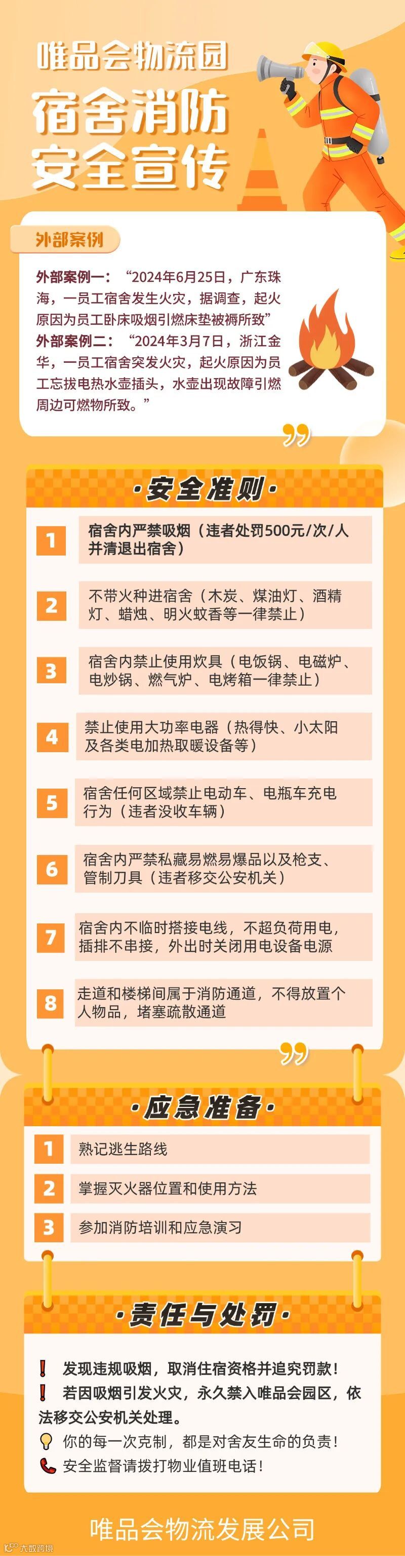 唯品会物流园 宿舍消防安全宣传 唯品会物流发展公司