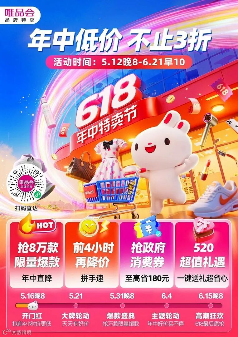 唯品会618特卖节5月16晚8点正式开启,持续至6月21早10点,主题多多活动不断。唯物园同学温馨提示您查收海报专属福利,新客享红包,为您的年中礼物送上优惠。假期虽短,情谊绵长,祝您事业如龙舟竞渡,全速前进;生活如七彩香囊,圆满吉祥!