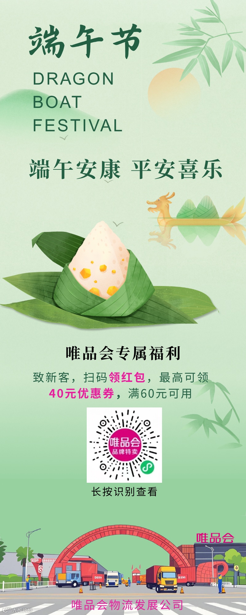 今年端午与六一奇妙相遇,粽香与童趣撞个满怀!在这双节同庆的美好假期,愿您与家人品尝生活的香甜,重温童年的快乐,也愿幸福如物流般高效顺畅,准时送达您身边。