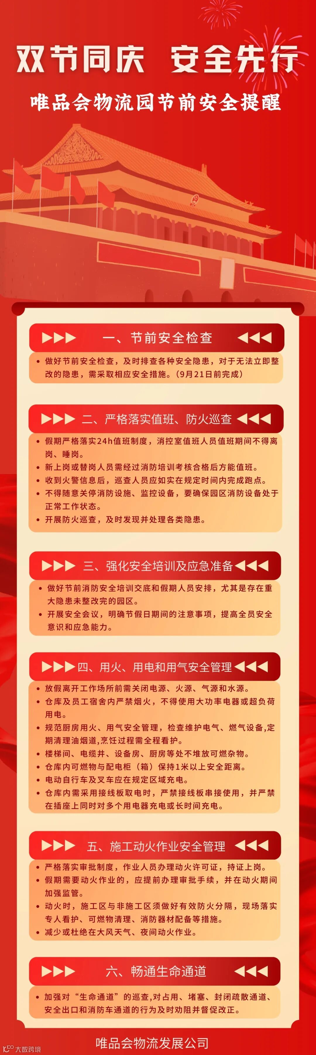 唯品会物流园温馨提示 双节同庆安全先行 唯品会物流发展公司