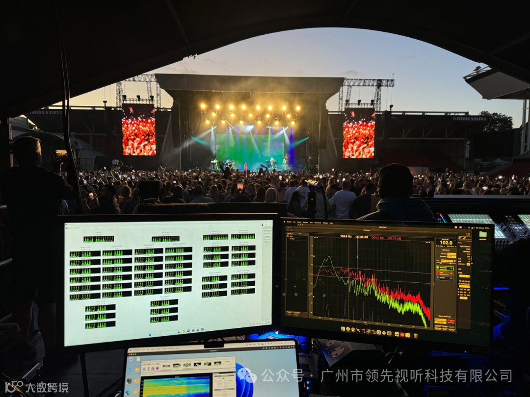 另外还设有两个延迟塔,每个塔上有12个WPL扬声器,总共部署了80个旗舰WPL线阵列音响。这些扬声器由Martin Audio的iKON远程控制放大器以2分频驱动。还有24个WPS阵列作为前补扬声器,TORUS-T12作为侧补,XE-500则作为那些没有使用耳返监听的艺术家的可选参考监听。