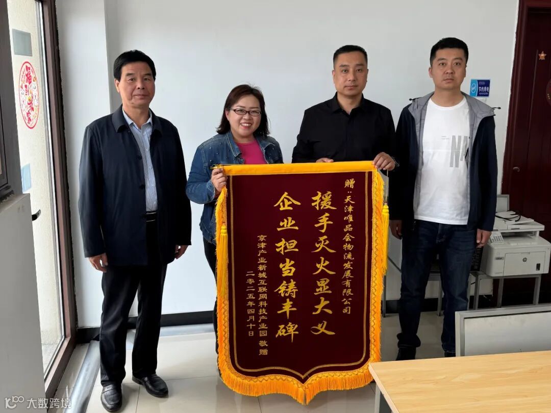 事后,属地消防中队和产业园管委会纷纷点赞,对唯品会天津园区在灭火行动的突出贡献给予高度认可。产业园管委会企业服务部、安管部门致电鼓励,还在4月16日送上 “援手灭火显大义,企业担当铸丰碑” 的锦旗,表彰唯品会积极承担社会责任,共同维护群体消防安全的优秀事迹,激励着园区继续砥砺前行。