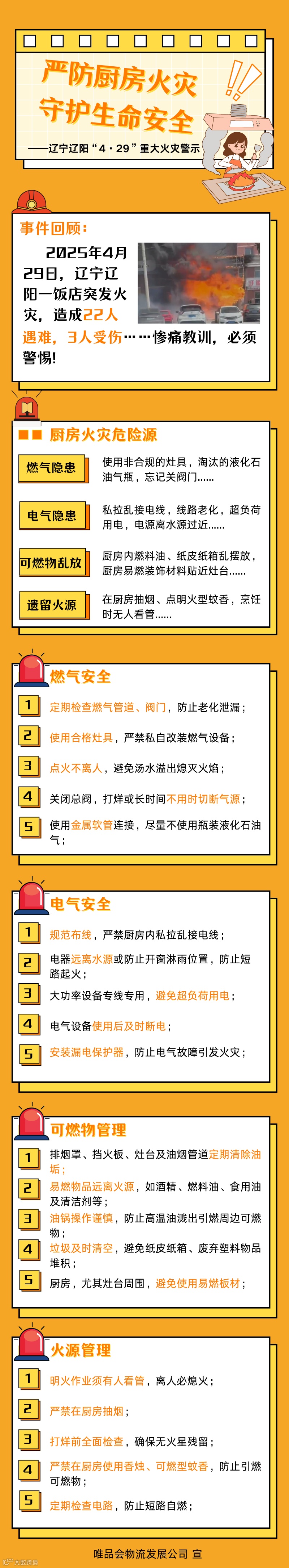 严防厨房火灾 守护生命安全 唯品会物流发展公司