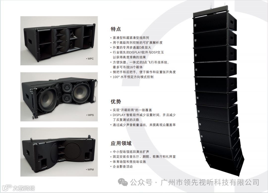 技术,采用了带有外部放大器的新型线阵列方案。Wavefront Precision 系列以经济实惠的产品提供了无与伦比的音质、覆盖一致性和控制力,这种独特灵活且可升级的解决方案已被全球音响租赁和固定安装公司迅速采用,成为Martin Audio有史以来销售得最快的线阵列系列。