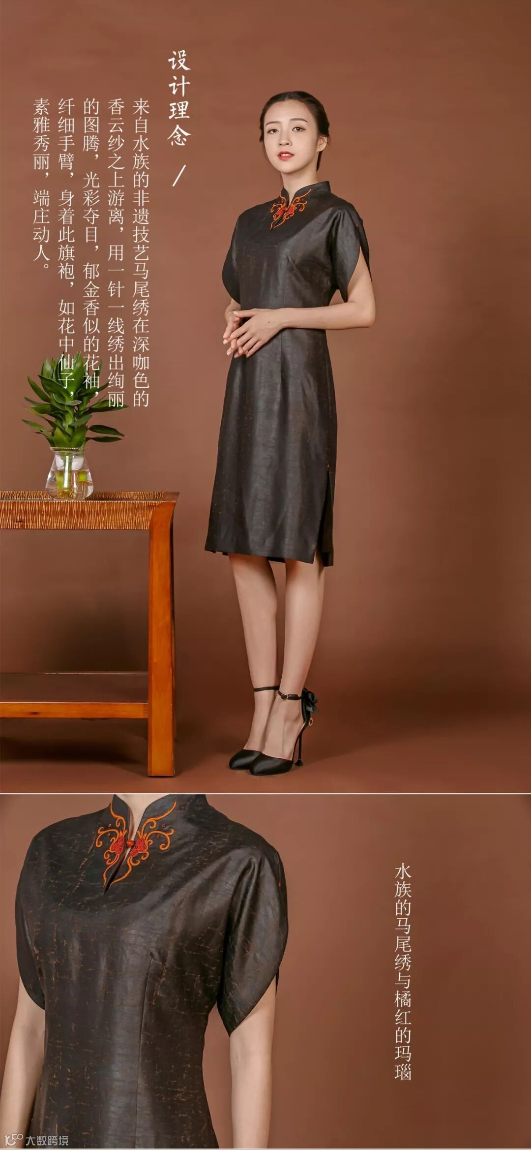 在过去,马尾绣的纹样、配色、针法代表了水族妇女的美德。今天,马尾绣“牵手”香云纱,表现出独具韵味的美学特色。