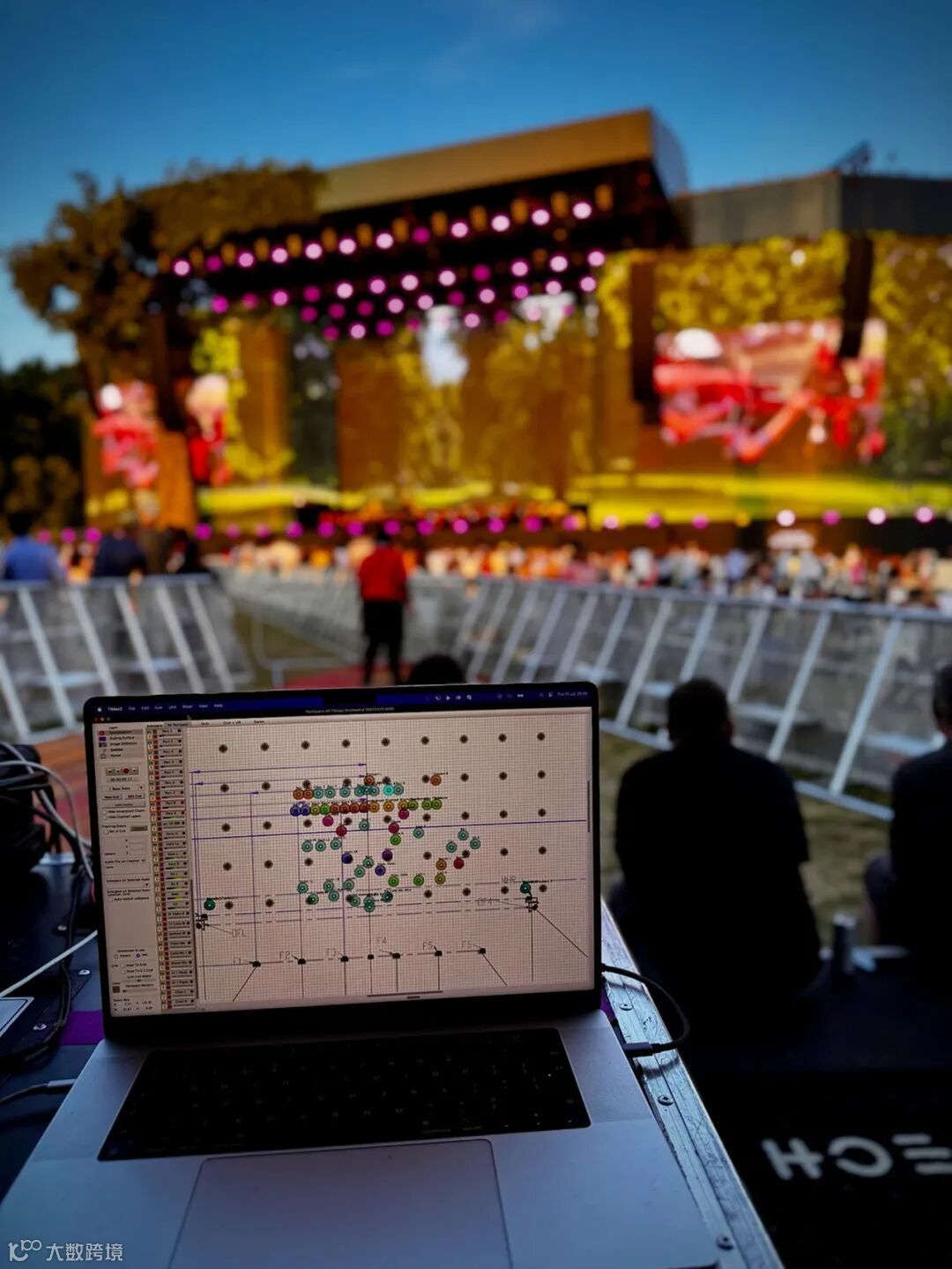 TiMax产品与软件经理Dan Higgott在工作室使用TiMax构建了舞台布局的空间声场。他通过全新的"TiMax映射曲面"功能,将此配置传输至BST音乐节现场调音台的TiMax SoundHub设备,并通过参数缩放,精准复现了实际舞台的声学环境。