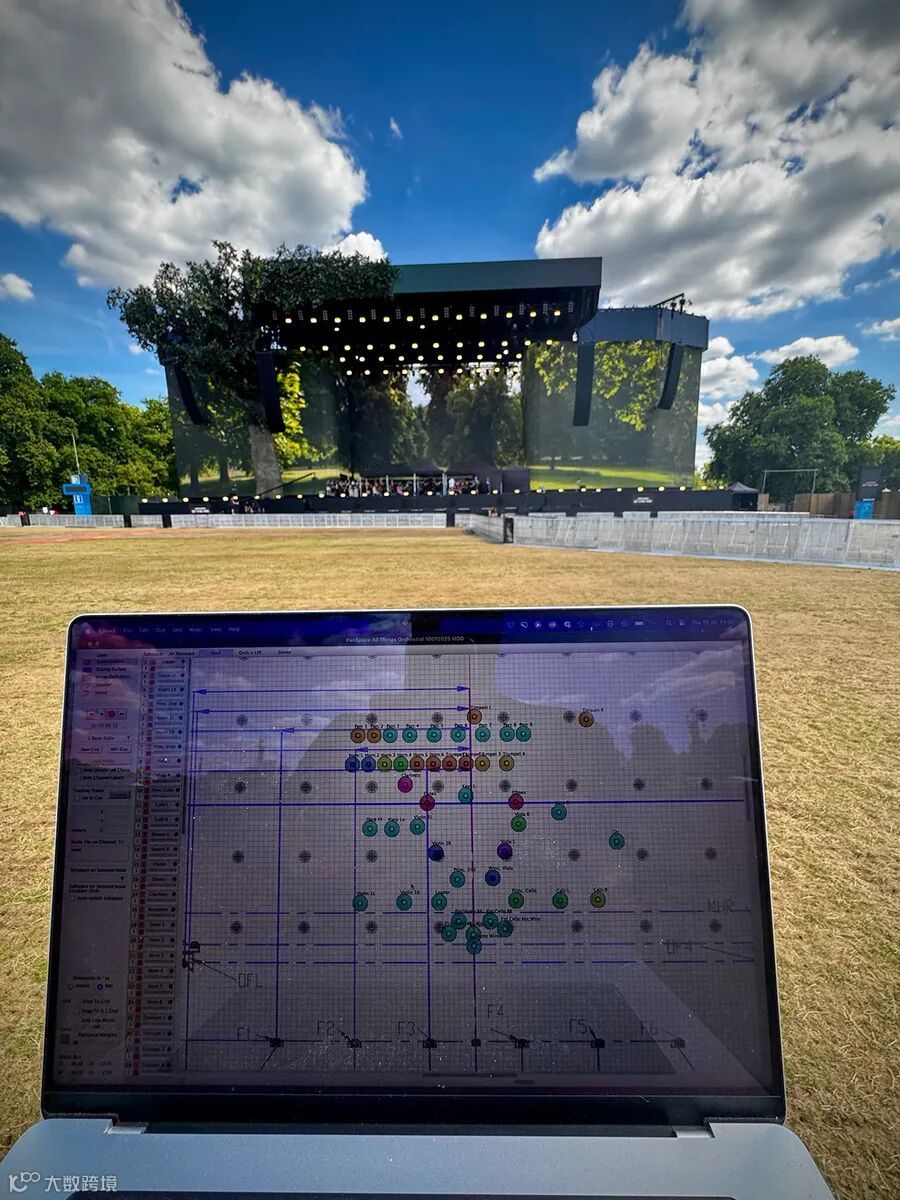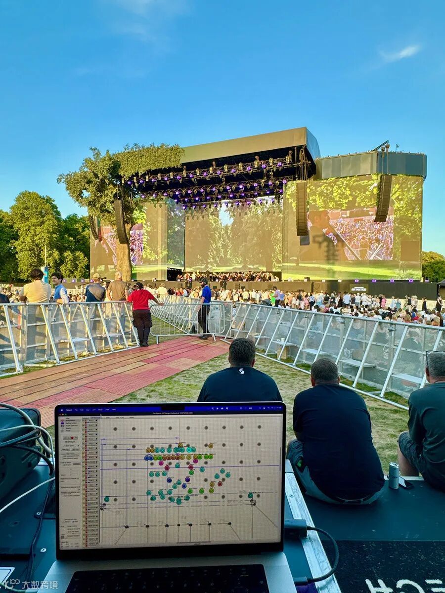 此音频里程碑事件诞生于伦敦BST海德公园音乐节。现场由Solotech英国公司部署了经Martin Audio优化的线阵列系统。为实现这一突破,音响设计师兼FOH混音师(Sonosphere公司的Phil Wright)以TiMax SoundHub延迟矩阵空间处理器,取代了传统的调音台矩阵功能。他基于一套标准的立体声悬挂系统,并配合前区补声与延迟塔,重塑了户外现场空间音频的技术边界。