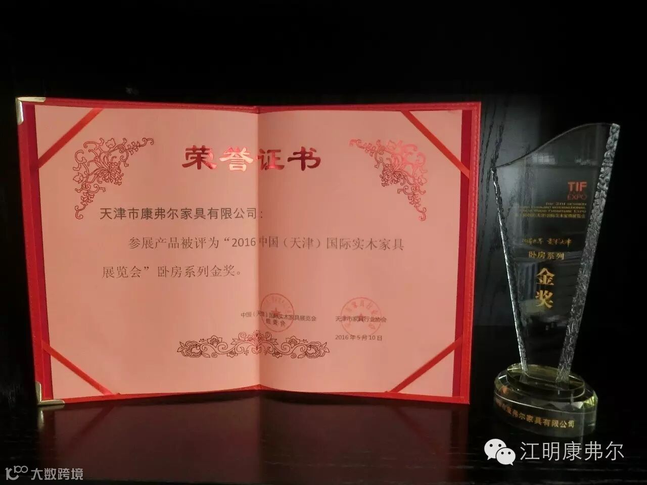 此次展会,江明康弗尔获得“2016中国(天津)国际实木家具展览会”卧房系列金奖。