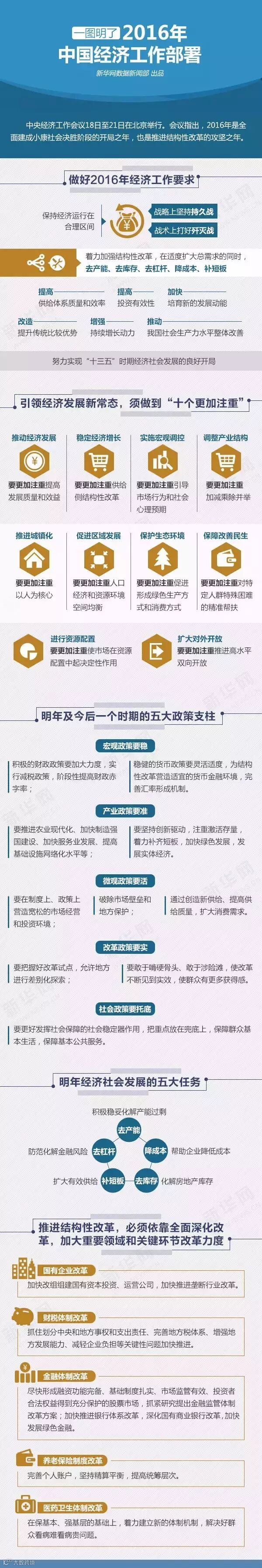 “十三五”规划开局之年——2016年中国经济将有哪些新动向?会议对明年经济形势、稳增长重点、结构性改革战术任务、重要改革领域、惠民生要点和开放战略做出了明确部署。中央经济工作会议强调,稳定经济增长要更加注重供给侧结构性改革。