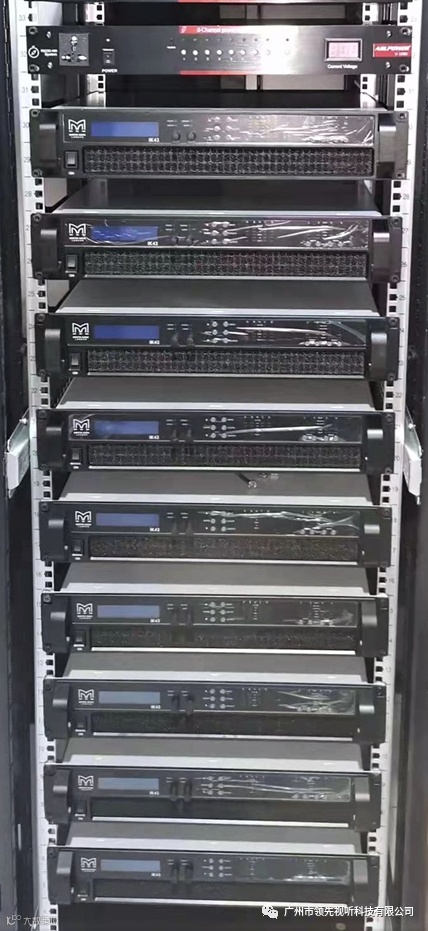 作为保证演出效果最关键的扩声系统设备,甲方在进行多方考察对比筛选之后最终选择了业界久负盛名的英国著名扬声器品牌 Martin Audio。主扩声系统采用左右二组共12只双12寸线性扬声器覆盖全场观众,8只双18寸超低音扬声器还原低频的震撼和能量,整个系统搭配9台IK42网络数字功率放大器提供动力,其支持Dante输入使其非常便于远程传输及监测。