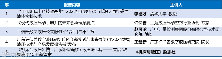 “王玉明院士科技强基奖”暨“2024数智液压技术与产品发展报告书”分论坛