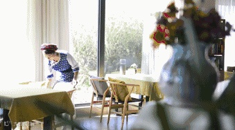 丈夫:早上5点左右,因为她要先打扫房间后才做早餐。