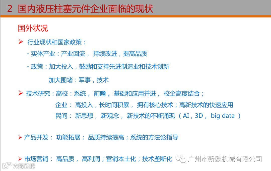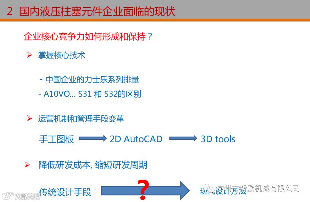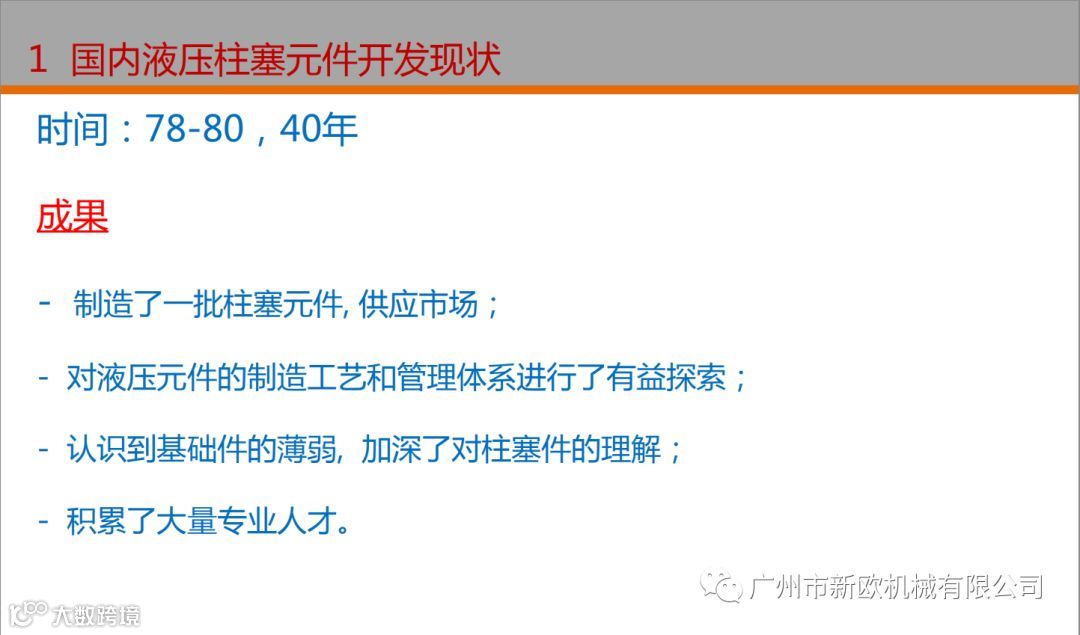 本次技术交流的主要内容即是对过去发展成就和不足的回顾,参考先进的产品开发理念,提出国产液压元件的技术发展路线图,希望对企业的发展有所启发!