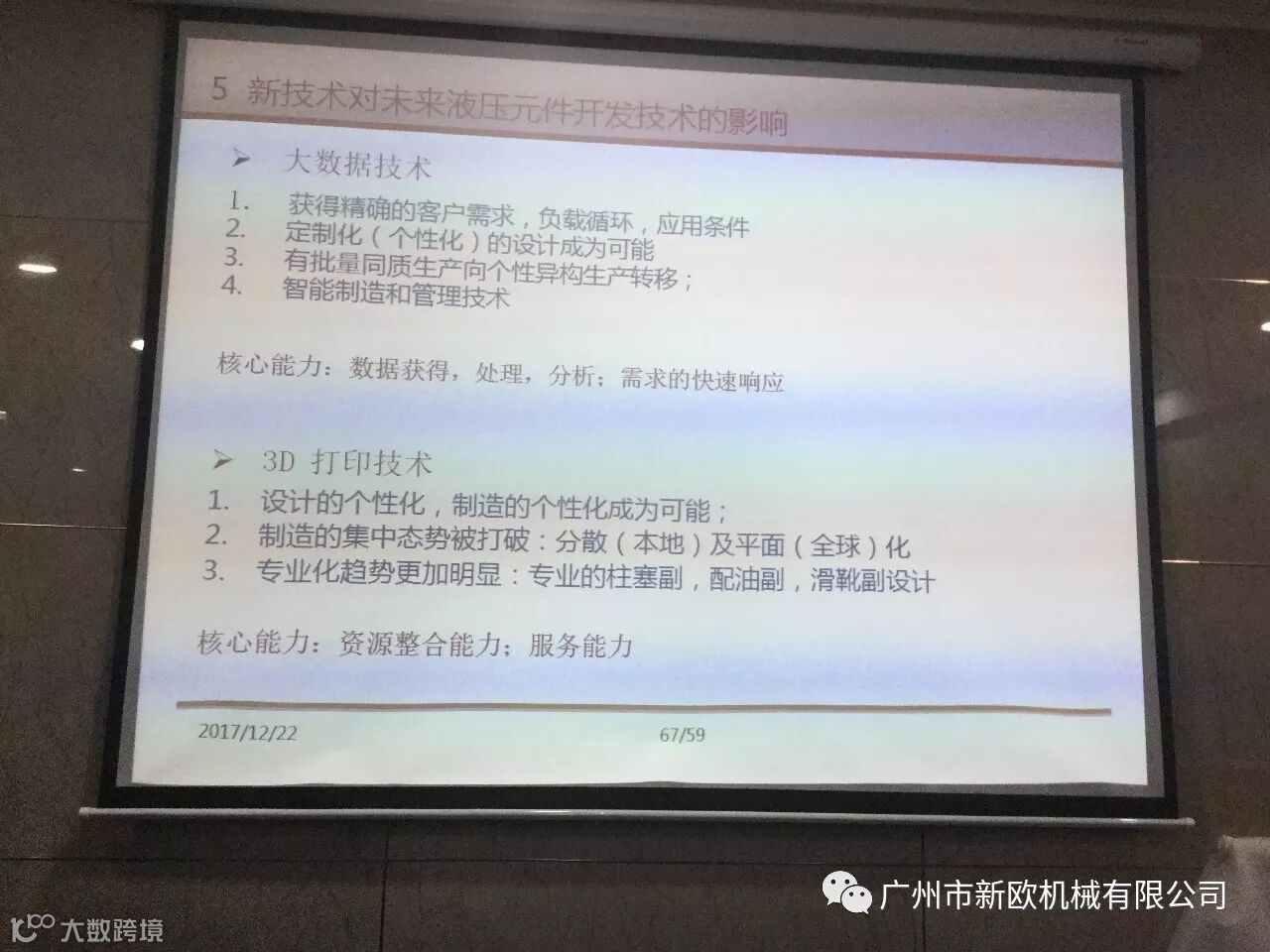 2017年12月22日,“工程机械液压行业国外现状和3D新技术运用知识讲座”在山水酒店顺利举行,此次讲座特邀液压行业专家怯军老师亲临授课。