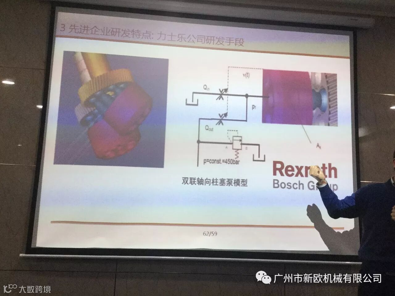 培训现场,怯军老师结合力士乐和卡特发展过程,通过液压柱塞元件技术发展进展及方向、先进企业研发特点、液压测试与服务、新技术对未来液压元件开发技术的影响几大方面,以过去、现在、将来的时间主线,探讨中国工程机械行业液压的发展和提高,并对高科技VR,裸眼3D技术在工程机械领域的应用进行展示。