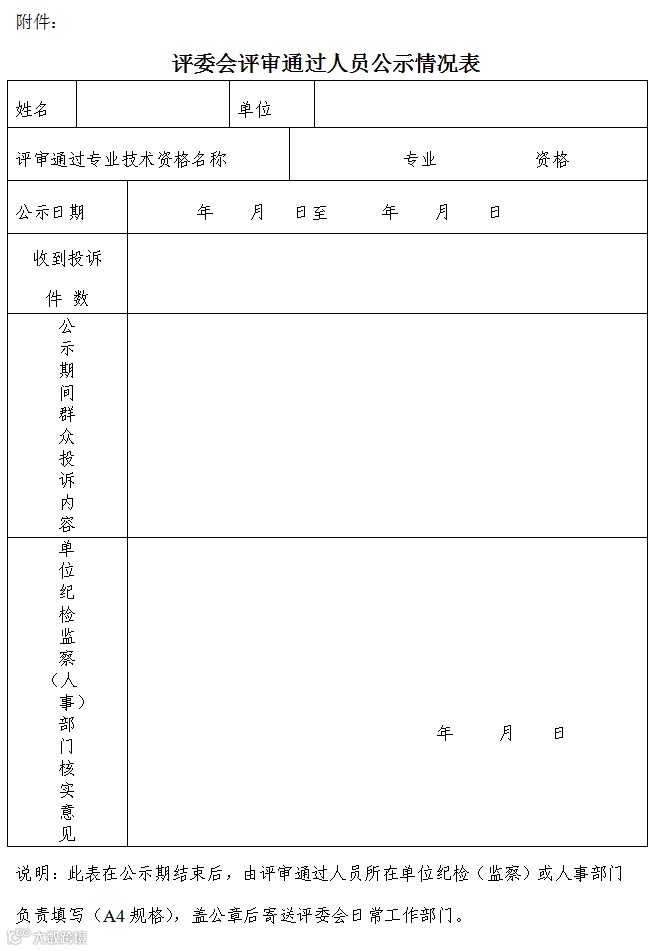 按政策要求,除评委会统一进行评后网上公示外,评审通过人员所在单位需在单位显著位置张榜或单位网站进行评后公示。评后公示完成后,评审通过人员所在单位按要求填写《评后公示表》,加盖法人单位公章,扫描材料,发送到邮箱:254542758@qq.com,邮件主题:正高级+申报姓名+评后公示表。