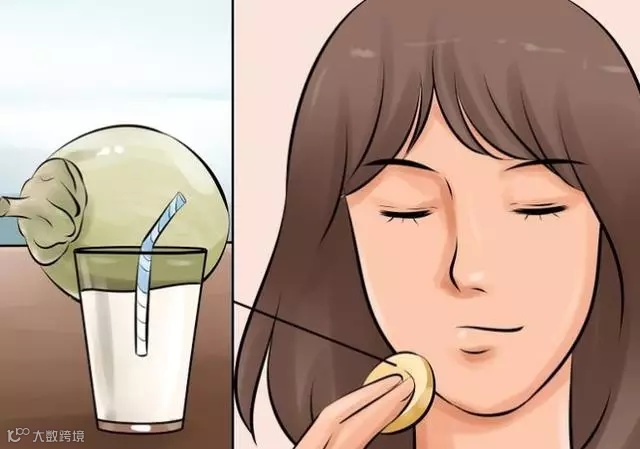 用棉球蘸少许椰子汁,涂在脸上和你想美白的其它部位。
