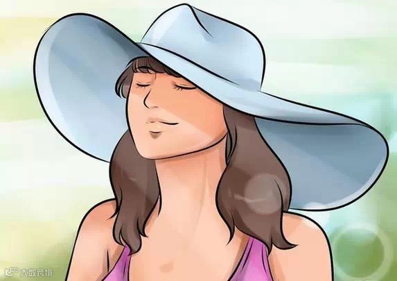 出门戴帽子。夏季出门尤其要戴好帽子保护脸。如今的帽子款式都很时尚,你在保护皮肤的同时,说不定还能引领时尚潮流呢。