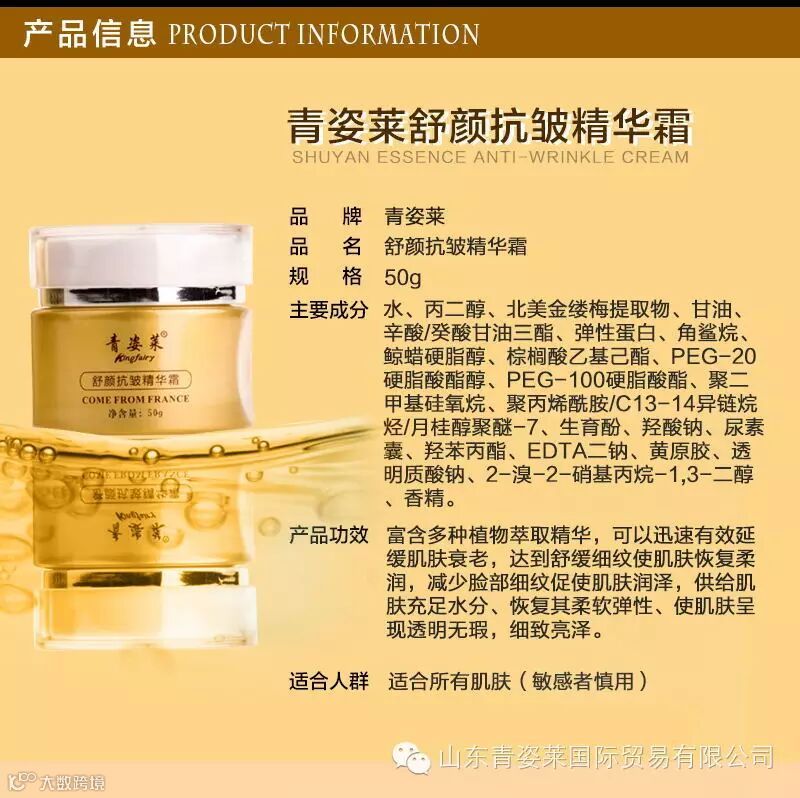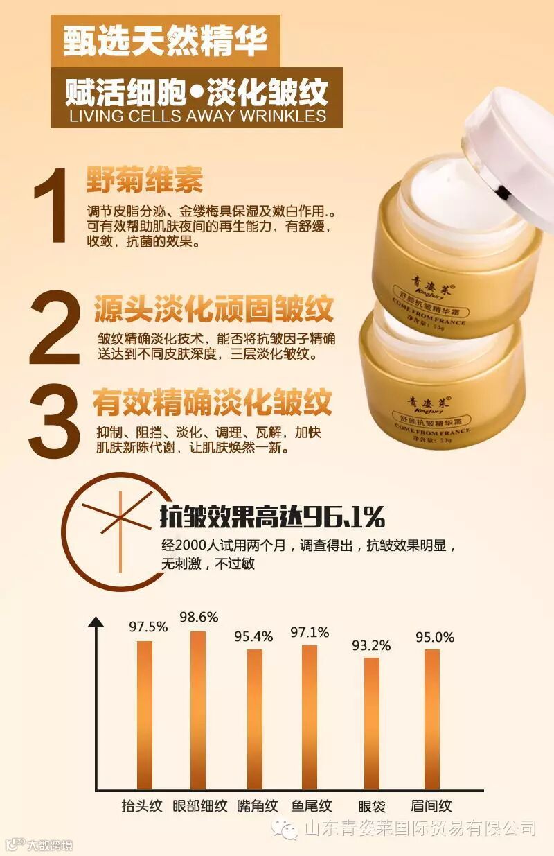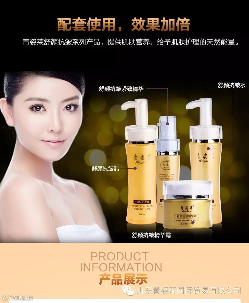 青姿莱品牌系列是能调理面部经络气血,改善肌肤新陈代谢并延缓衰老的产品。 主张打造纯天然护肤秘籍,把大自然的馈赠装进瓶子,让你的美丽像呼吸一样真实,用真情锻造产品,以爱心打造质量。