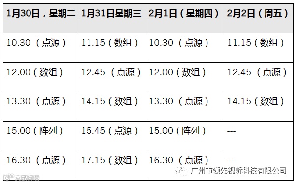 今年的音频演示长度较短,每节仅 45 分钟,而且时间每天都在变化。为了便于有足够的演示和演示时间,我们将增加的会议数量划分为单独的点源演示和阵列演示。