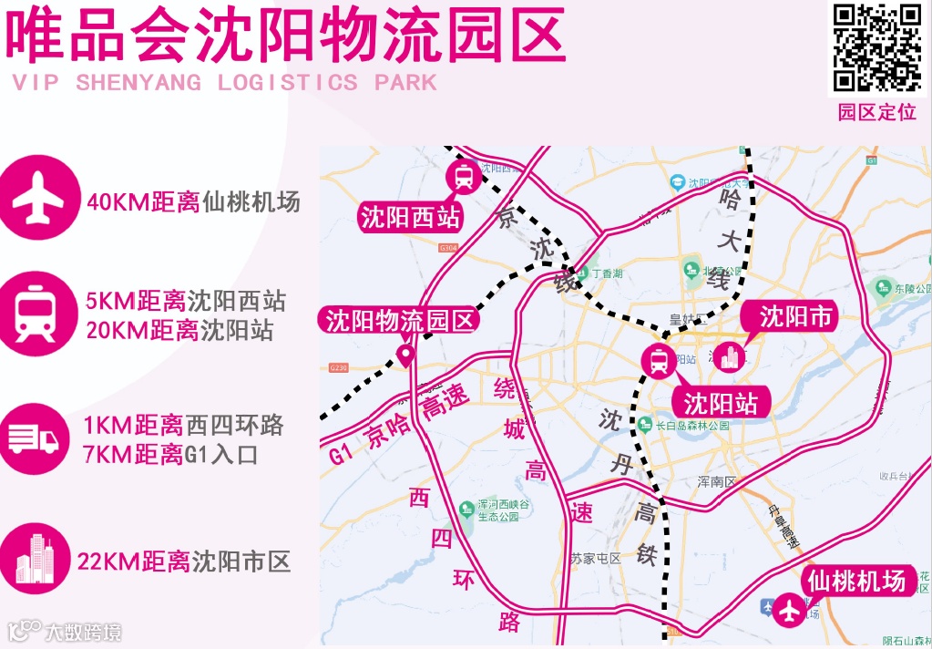 唯品会沈阳园区位于沈阳市于洪区沙岭路108号,充分考虑了仓储选址的便利性,不仅毗邻沈阳西四环路这一城市主干道,确保日常物流运输的高效性,更与京哈高速紧密相连,使得园区的物流辐射范围进一步扩大。