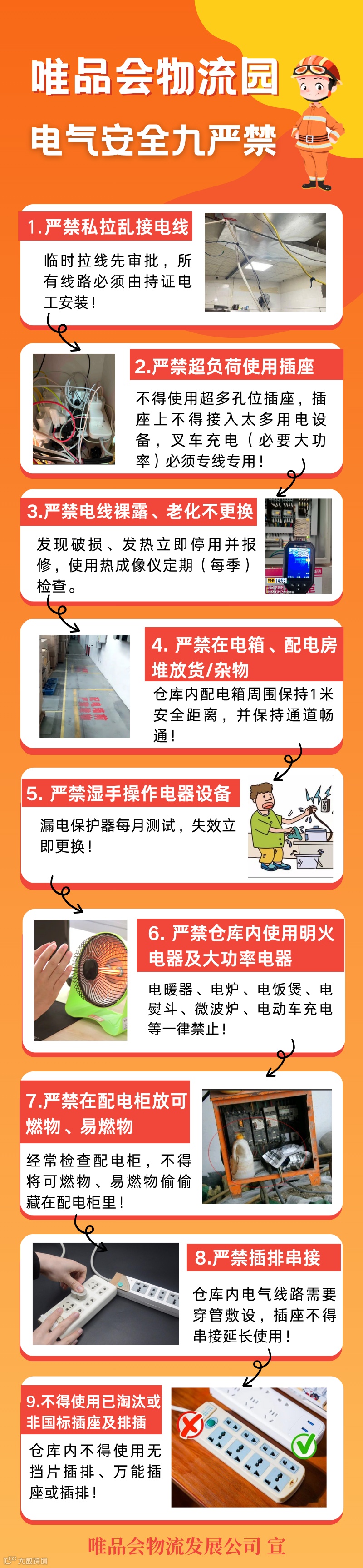 唯品会物流园 仓库电气安全九严禁 唯品会物流发展公司