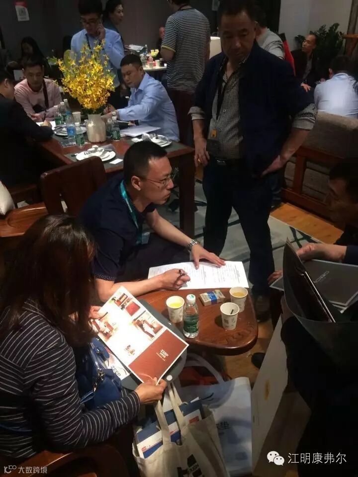 深圳国际家具展会期间,江明康弗尔展台人流异常火爆,销售经理在现场为经销商认真详细讲解