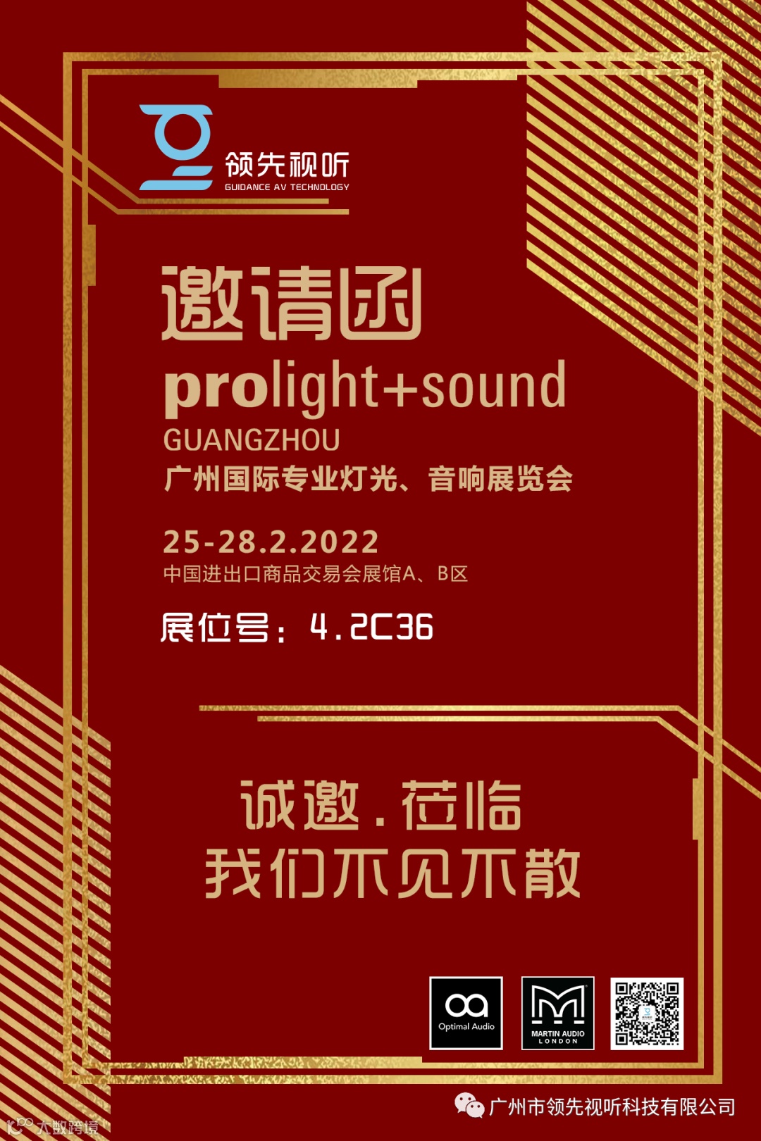广州市领先视听科技有限公司第二十届广州国际专业灯光、音响展览会将于2022年2月25至28日在中国进出口商品交易会展馆A、B区举行。