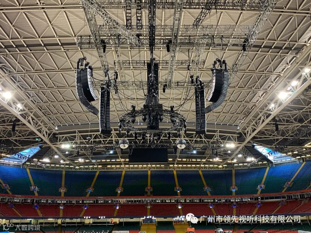 与此同时,体育场内环形延时系统由悬挂的八组紧凑型8 x MLA Compact阵列组成。