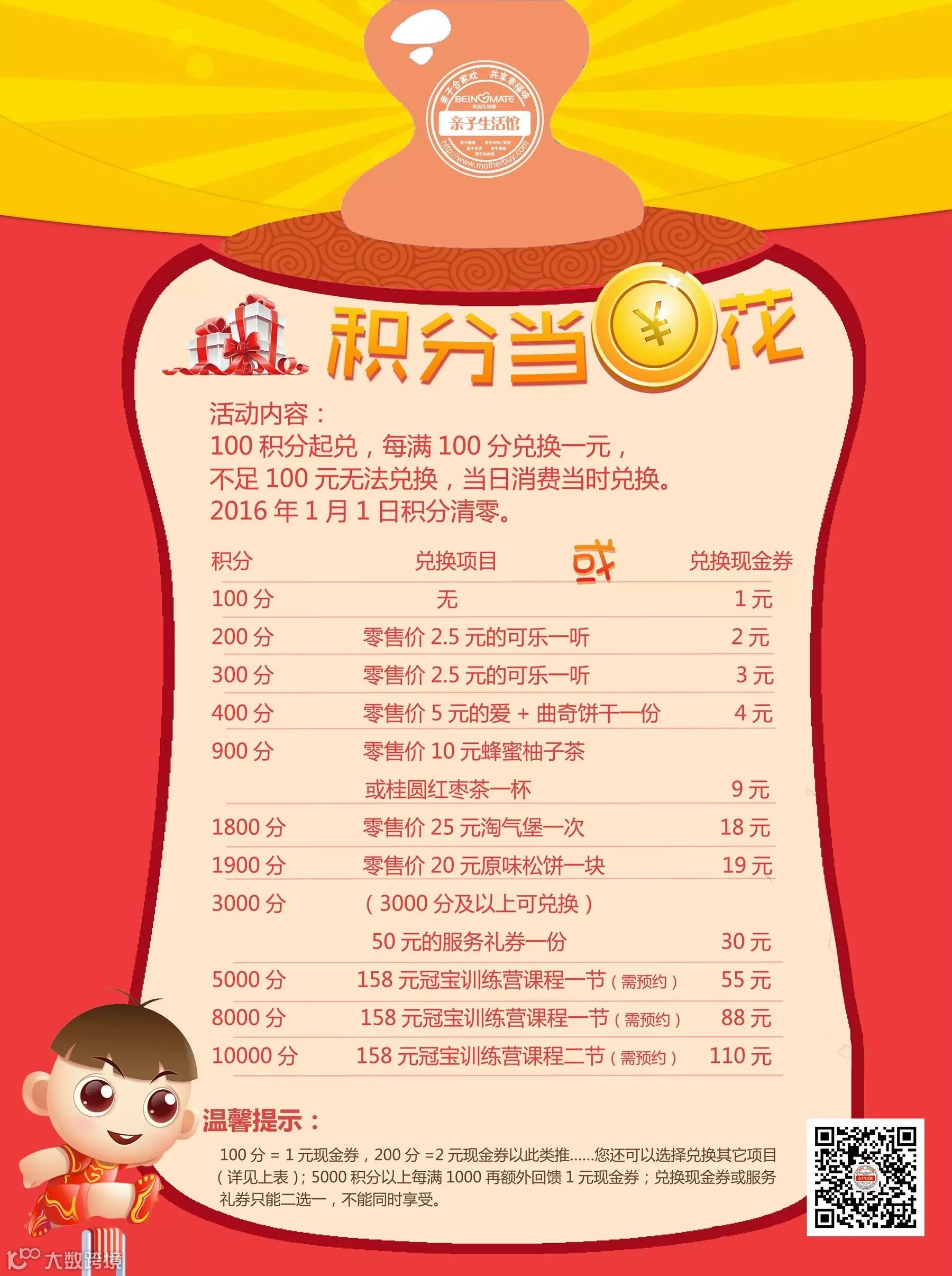 积分当钱花!是的你没有听错!!重要的事只说一遍就够了!!即日起至2015年12月31日,生活馆进行2015年积分兑换,具体内容可点开下方大图或详询店内。