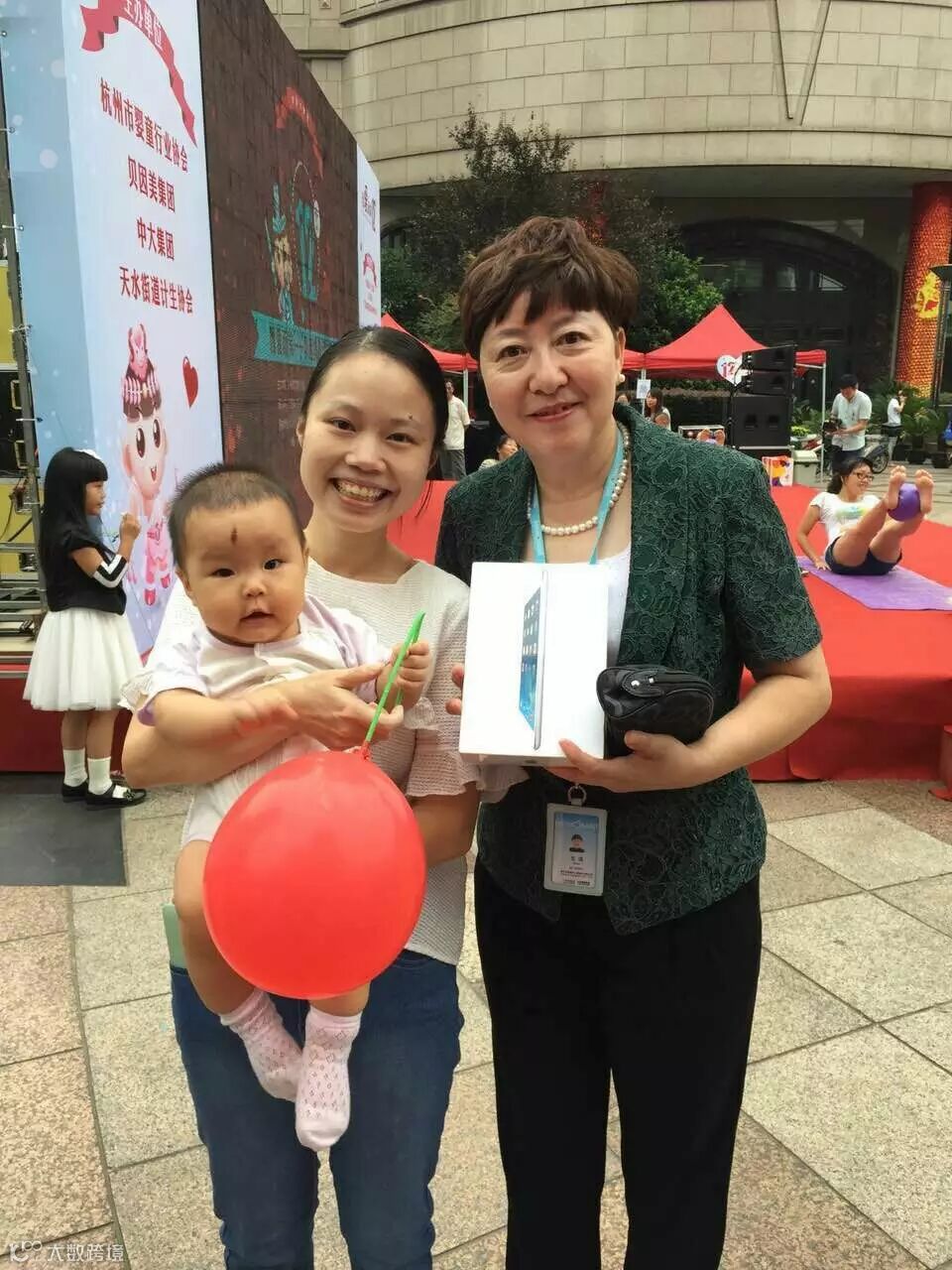 杭州婴童行业协会秘书长,和贝因美集团领导给获奖小朋友颁奖,并亲切互动,礼物也很可爱实用哦!